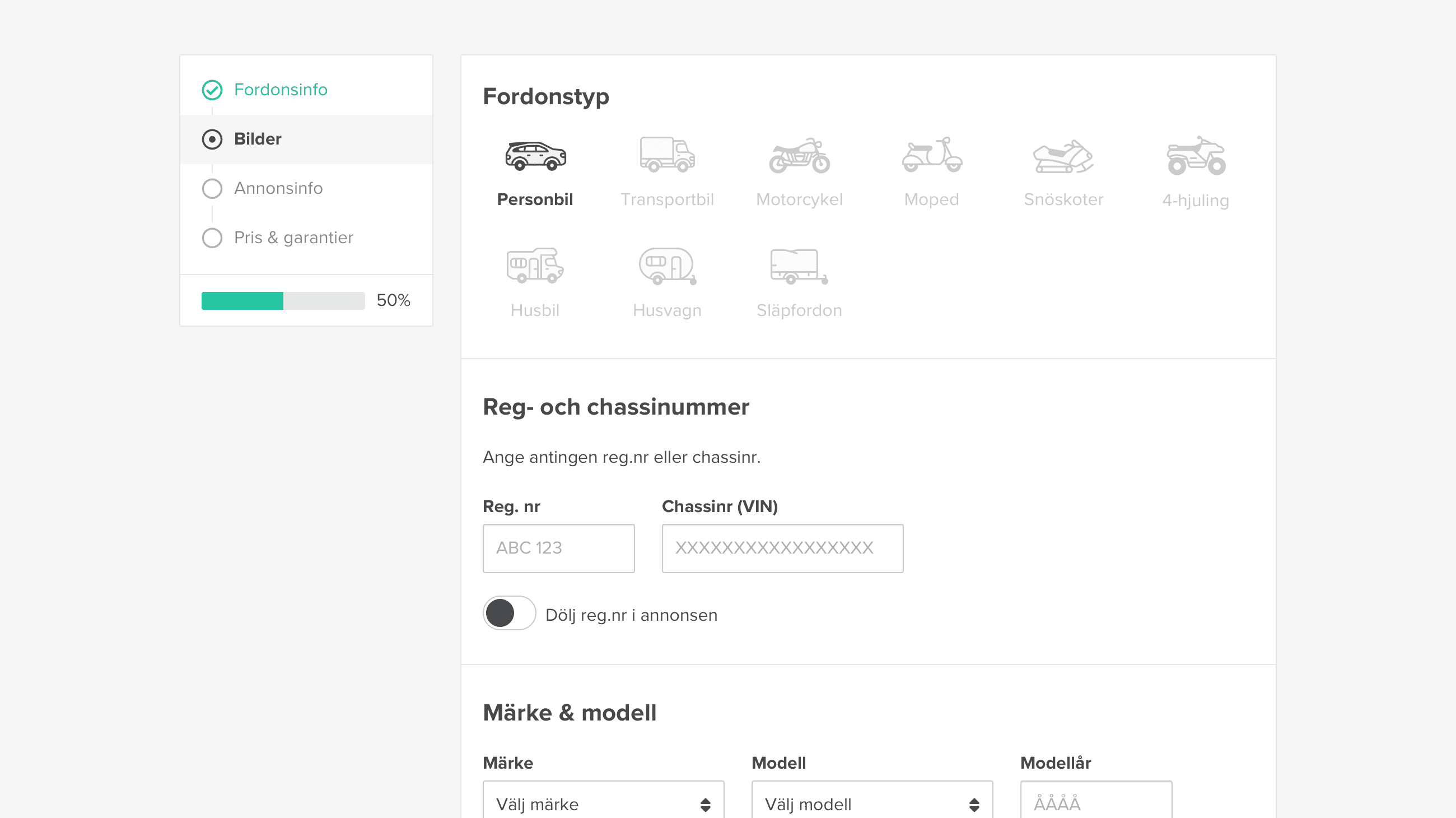 Nybilsguiden was a new product I designed, aimed at guiding users through the process of buying a brand-new car.