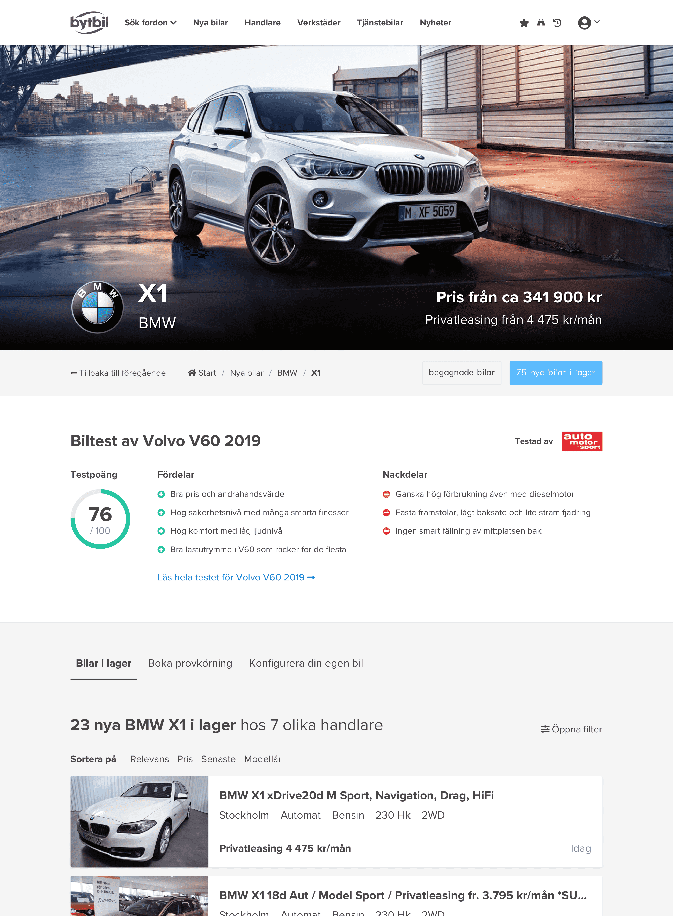 Bytbil is Sweden’s largest vehicle marketplace, featuring listings from nearly every professional car dealer in the country.