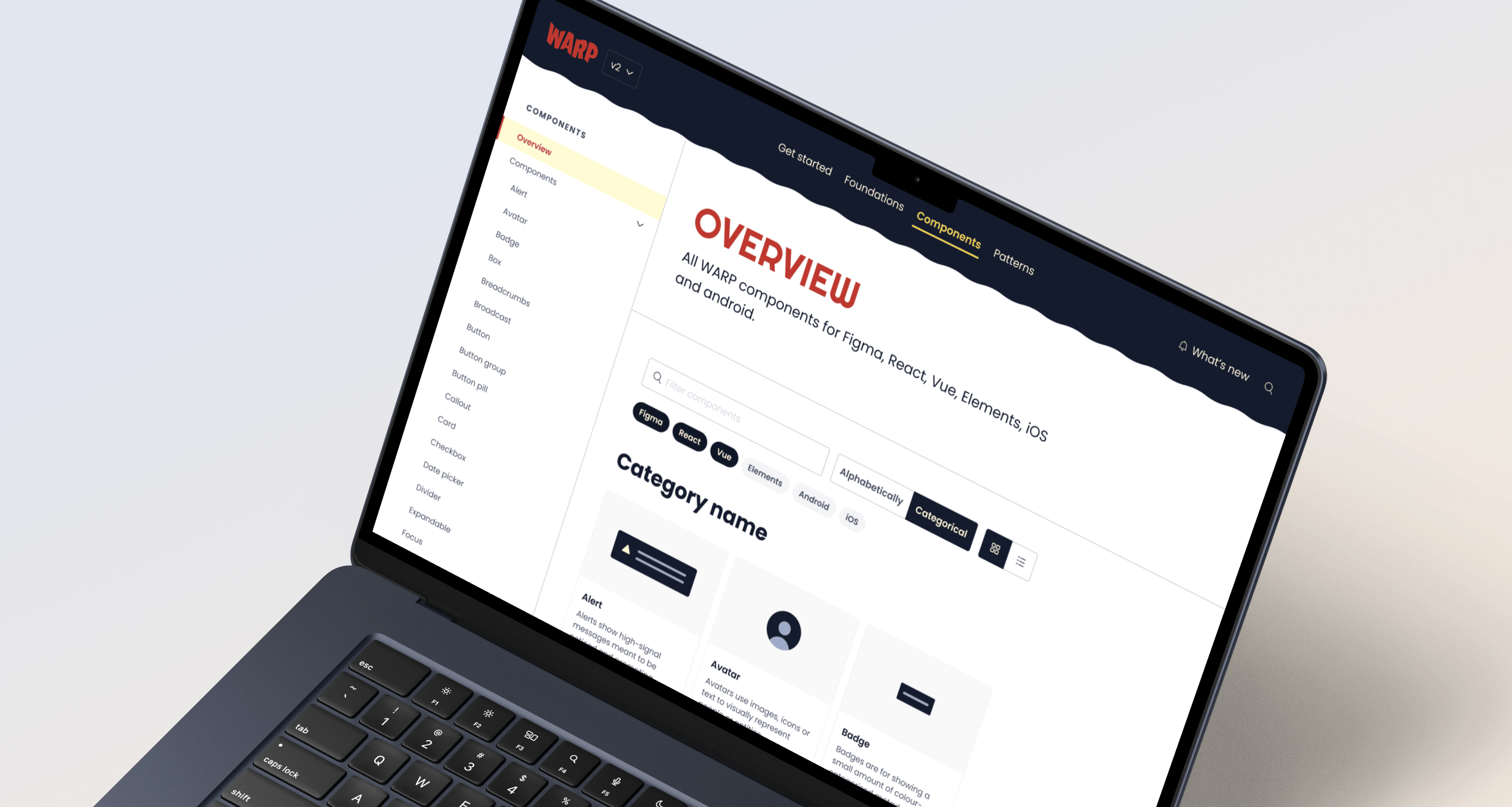 WARP is a multi-brand design system used by some of the largest marketplaces in the Nordics. It's the name of a team and a design system and a part of Schibsted.